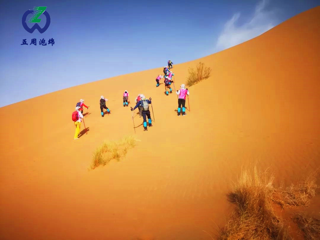 在茫茫戈壁和灼灼黃沙里,五周泡綿周磊總經(jīng)理表示每一次體驗(yàn)都是生命的升華,每一次行走都是自我的超越。徒步愛好者沿酒泉漠北古戰(zhàn)場(chǎng),穿越黑戈壁、沙地、丘陵、雅丹地貌,途經(jīng)火石峽烽燧、天羅城等歷史文化遺址,用雙腳丈量歷史,在行走中感悟人生。