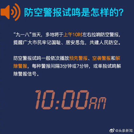為銘記″九一八″事變,今天全國多地將拉響防空警報(bào)。五周泡綿小編表示,防空警報(bào)分哪幾種,試鳴時(shí)是什么流程?而我們平時(shí)聽到防空警報(bào)應(yīng)作何反應(yīng)?若在戰(zhàn)時(shí)響起警報(bào),又要怎樣應(yīng)對(duì)?