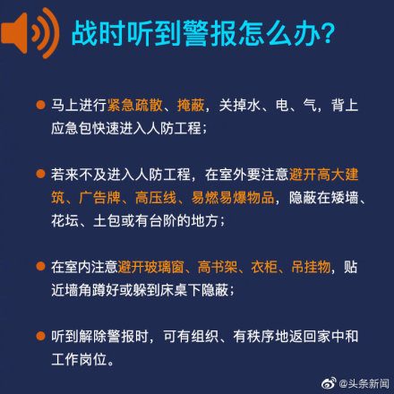 于此同時(shí),五周泡綿小編表示,防空警報(bào)分為預(yù)先警報(bào)、空襲警報(bào)和解除警報(bào)這三種。